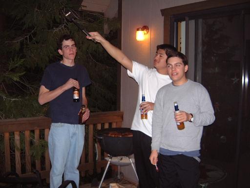 Ain't nothing better than barbecuing with yo homies while drinking some 40s... too bad we didn't have 40s. These here are some New York steaks and pork chops (fucking nasty).