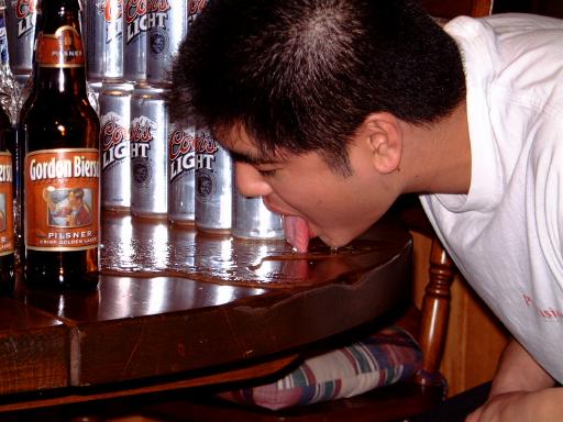 Fuck! Accident! I had to lick that spilled beer up before it went on the carpet.