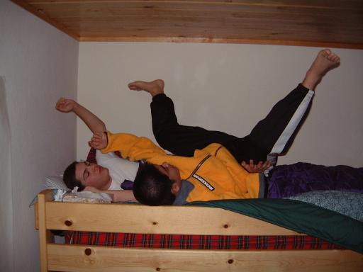 "Yasu get the fuck out of my bed!" Eventually Ted moved to my bed, and I slept in his for a while. But I had to pee so much I decided to sleep on the couch so I wouldn't wake anyone up. And someone was snoring. Shit.