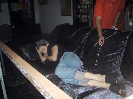 Dino and Kristen- our room around 4am. Dino and I were hella calling fools cause we were hella bored. Kristen was too, and came to our room around 3am.