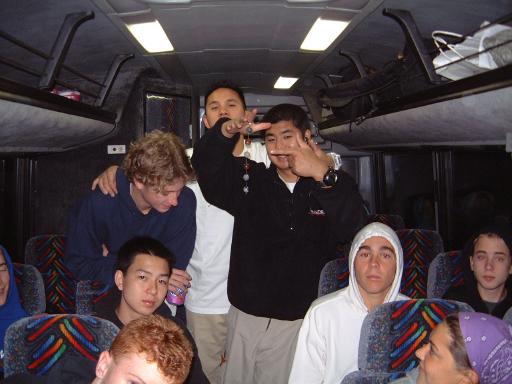 On the bus ride back home. Clockwise from the redhead. Bryan, Mike, Loughran, Dino, me, Jake, Mikey, Kristen.