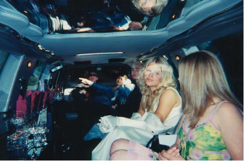 From the front. Goddamn this shit was big, Hummer limos are so stunna though. Lindsey looks really, really happy.