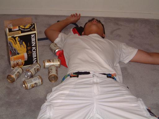 Drunk Drunk Yasu has only appeared 3 times. It's kinda scary. More so, he is quite annoying (according to Ted). The first time he appeared was at Ted's house on 11/25/00. He drank too many Mickey's 40s. He went around telling everyone that he loved them. He also got kinda sick that night. The second time he appeared was in at the Mermaid Inn with Cheech, Josh, Chubb, William, Chris and his bitch, Eben, Phil, Noah and Ryan. He was busting beer after beer, with no water. He also doesn't like to share beer, so he ended up drinking all of it. This was the night that we got kicked out of the Inn, because Eben called his dad, saying he was at Tommy Flynn's house. Eben's dad sensed something funny, and he came, alerting the manager. Drunk Drunk Yasu got a ride home by Chris' bitch that night. He threw up in his room that night. The third and final time he showed up was at Emmett's cabin. The second trip. From 4:30pm-11:30pm he had a beer in his hand. He was sleeping in the loft, which is hot as fuck, and he threw up a tiny bit. He could not bust a big throw up. He went downstairs and slept for an hour in the cold. He felt a little better. He then went to the first floor, and proceeded to spend the rest of the night on the couch. We do not like to see Drunk Drunk Yasu. He cannot be reached.