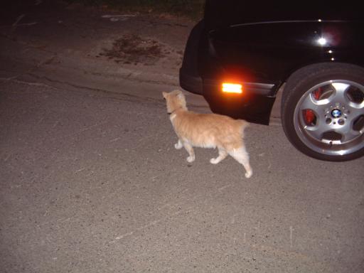 That's the nice cat that lives on my street. His name is Louie. He frequently pays visits to my house to say hi and eat food. He also likes to sit on people's cars. It tends to make people angry.