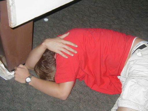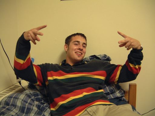 We really wanted to poon this fool. He wouldn't let us. And nobody wanted to pin him down. Raul, a thug downstairs, wanted to T-Bag him. Again, nobody wanted to pin James so it didn't happen. He was screaming "NO POON. NO POON." He was convinced that there was a floor beneath this one. And he chased Zillman with one of those boards. The next morning, after his Chemistry midterm, he threw up in front of a tour. Haha what a thug!