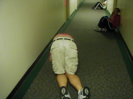 He crawled this whole hall. And then strange rugburn marks appeared. Notice Erin laughing her ass off.