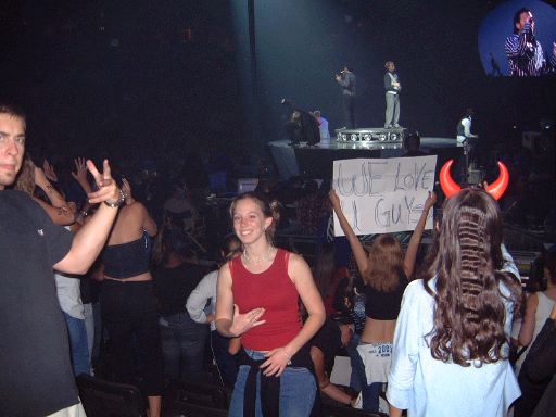 Yeeeee!!! I saw another Backstreet Boys concert. It made me very, very happy. Oh my. But I was sad that day, October 15 (which was actually supposed to be the mini-Apocalypse) because nobody wanted to go with me. It made me really sad. Actually nobody wanted to pay the $77 for the legal tickets. And Ms. Numba 1 Hata, you know who you is. But I convinced my G Book to go. Actually I made him go. I said I would pay for his ticket. And this other girl Marcy said she'd go as well. This concert was pretty cool, except the other one was betta because of that one person. Not the one that first comes to mind though, y'all. We bought scalped tickets. It made me nervous at first. I don't like going to jail. But eventually everyone convinced me I wouldn't go to jail for purchasing scalped tickets. We went for free on Mr. Caltrain. And we bought $20 tickets. They were right in front of second row. Basically where I sat last time. Weird, huh? On the way back we took a taxi. And we pretended we were Japanese. But I am Japanese. They pretended. I like taxis. Well I know you don't wanna hear this fucking blabbing. Here are pics you bitches.