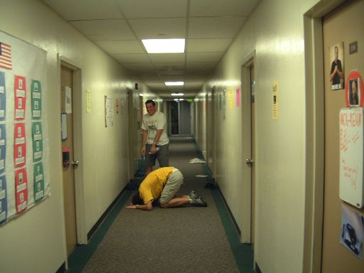 He said something really funny, and we dropped on the ground laughing. Yes, that's our RA in the back.