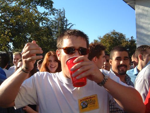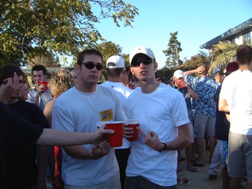 The party ended, er the kegs ran dry around 5pm. We went back to the dorms to go chop it up for a bit. Most of my friends passed out/went to sleep. I wasn't all that faded, so I was cool. We sobered up and then went to see Jet Li's "The One." It was a terrible. Do not go see it. We then went to the runs and got home around 3am. Fun day baby.