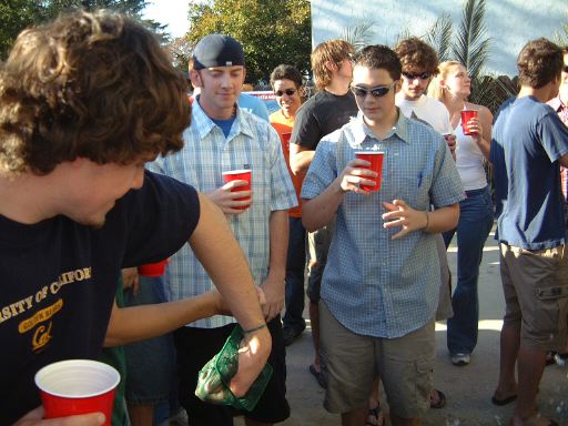 November 3, 2001. The Jungle happened. This is Yellow House's biggest party of the year. "The party of the month? Nah, the party of the year." 30 kegs/30 handles. Each year, they add one more keg and handle. I wonder how many they started out with. Maybe 20? James and Cohen were thuggish and bought me my "bid," or entrance ticket, since I was not at school at the time. It was $5. As it was, I was the #159 stunner. It started at 11:30. AM.