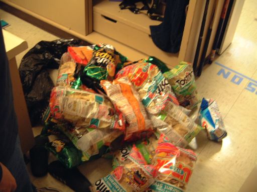 We took everything back in one fucking trip!!! We are tite.com. Cohen had all the chips in that garbage bag. It was quite amusing. He looked like Santa Claus.