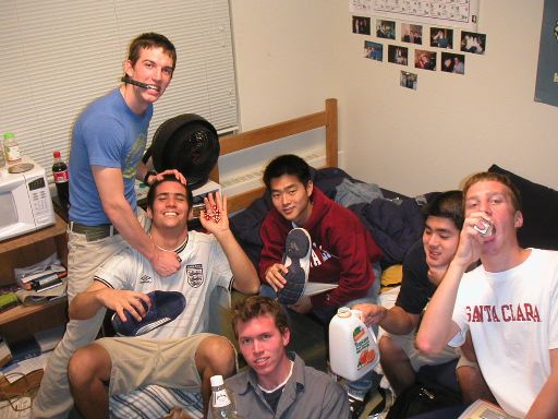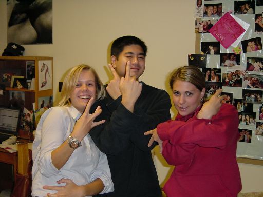 When James was visiting we took a picture where everyone had to grab something. Notice Jake has a knife to Stricker's throat. "Who's that Asian kid that looks like you?" you ask. That's Byung. It's funny cause his name is Byung and his roommate's name is Steven, and Byung's the one that can speak English. It brings me amusement. While we're on the subject of people looking like each other, let me let you into a little fact. People suffer from "own-race bias," which means people not your race look the same. Isn't that strange?