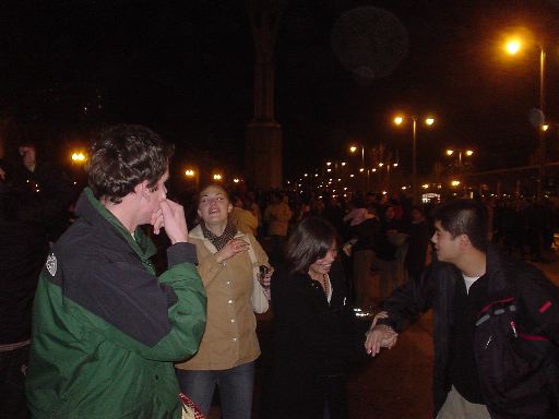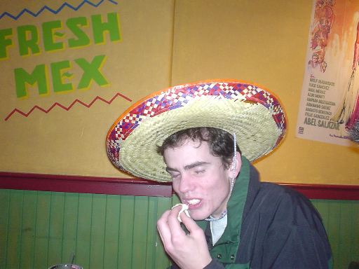 As we were rounding a corner, cops started to look at us funny so I had to duck in here to "corner" and finish my beer. How I came up with the word corner is a fun one. I'll tell you about it. See Lizzie had an away message up that said "comering" which I guess means eating in Spanish. It looked like "cornering" and thought that was really clever. But it wasn't, so I kinda gafted it.