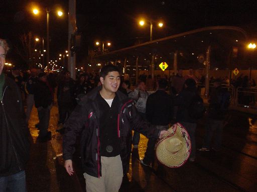 Then I got this bright idea to go around and put Chevy's hats on girls and then start dancing like assholes. Here are our first victims. This girl thought I was "sexy."