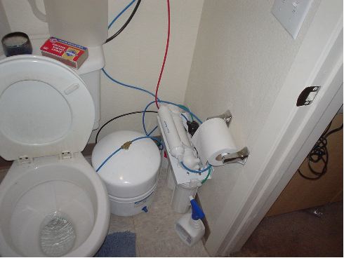 I've said it once, I'll say it again. And probably some more. Doug is a genius. He made this reverse osmosis water thing so that they can drink pure water. Although it's kinda gross that it's in the bathroom...