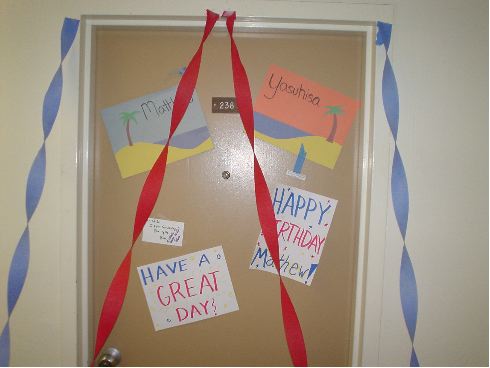 Oh it is Cohen's birthday. Apparently on your birthday someone from the building comes early in the morning and does this. I thought he had a secret admirer or something; I was perplexed. And by the way who took off my Lizzie McGuire ad that Jenna put up I will kill you.