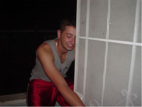 Nick and James on the roof of SAE at USC. James just got a gold stud in his ear. He looks like he's from the 80's. In Miami.