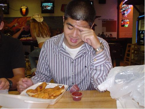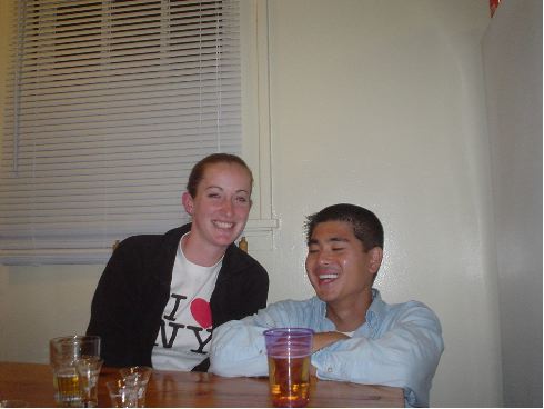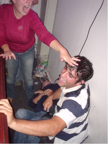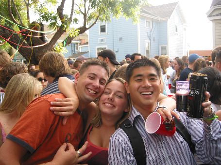 We had a Lacrosse mixer at Ice, and I've heard Brad's party trick is to pour beer on himself. Perhaps it's not a party trick; it's just that he gets that drunk. So he comes to the bar and he's already wet. I missed it, so he let me pour beer on him.