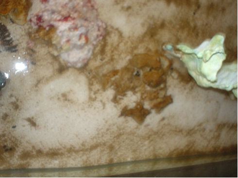 You see that red/white mess in the upper lefthand corner? Yeah that was our starfish that disintegrated in one day after dying. Gross and foul smelling.