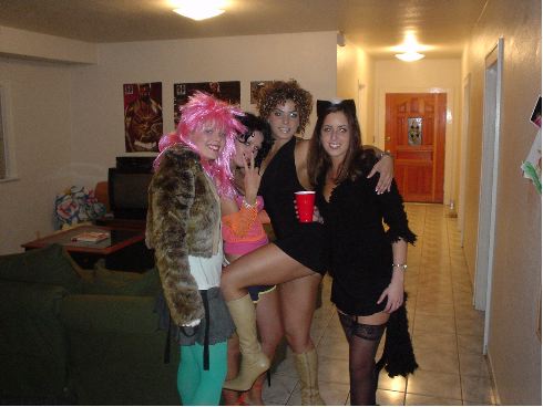 A few of the White House girls. Jaclyn I thought was Pink, however she is just a punk. Notice her aqua tights. You'd think those were from the power 80's right? No apparently she got them from some store I forgot the name. Jenna is Christina A, Roe Beyonce, and Lindsay a cat. Yes, ridiculous I know. By the way I passed out here and woke up at 5am, disconbobulated as fuck. I got really scared because I didn't have my bearings in order. Wouldn't you be?