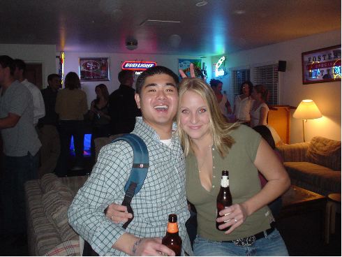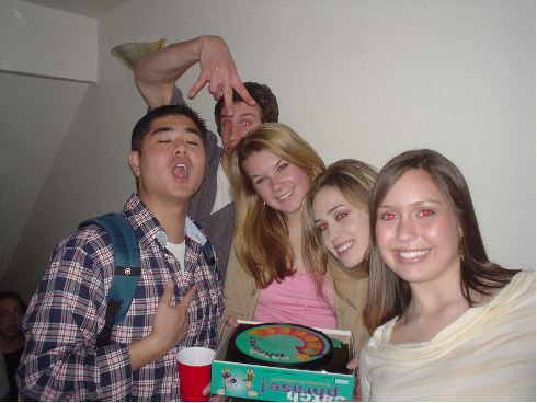 All these random people, not enough beer. Though the girl:guy ratio was like 5:1, which was pretty sweet, the good looking girl:guy ratio was more like 1:3. That girl in the blue's looking pretty good, n'est-ce pas?