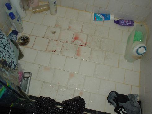 I finally found a bathroom as bad as UN's. What kind of shower has fucking blood in it?