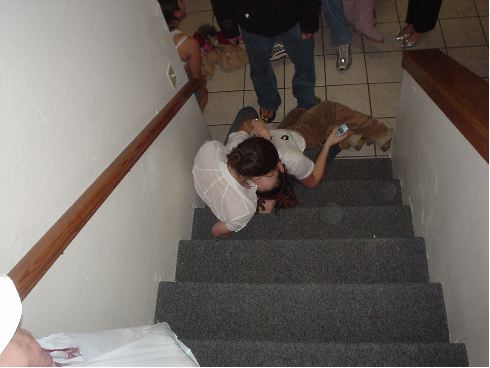 What the fuck is going on here? You don't give CPR to someone who just ate shit down the stairs and broke her neck. Or are they just necking?