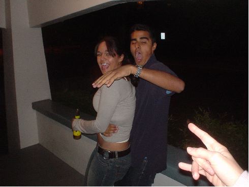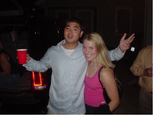My shirt was soaking wet and from second hand sources I am told that I was going around throwing it at people and slapping people with it. The best story from Charles- some dude was yelling at Pam upstairs, and I walk up behind him and slap him in the back of the head with my wet shirt. He turns around ready to chunk when Leland and Charles calm him down while I walk away. When I heard this I was scerrrred for I really think that I'm going to get my ass kicked one day because of something I say or do. Anyway I get the same story from Leland and apparently it was Swigger and he was laughing about it.
