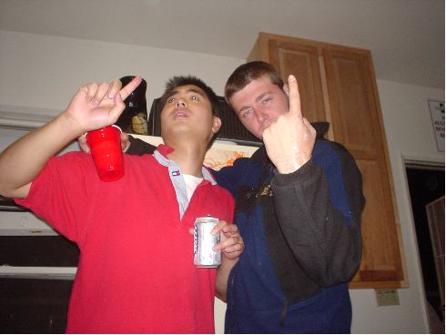 Kyle is on a roll. He beat out Larson, some dude I don't know, and Dave Ray (not pictured for some reason). But like I say, it's not a real chug unless nothing is spilled. People seem to have a problem with that lately, myself included. So I've taken a little sabbatical from chugging because I's tired of my clothes reeking of cheap beer the rest of the night. Expensive beer, maybe.
