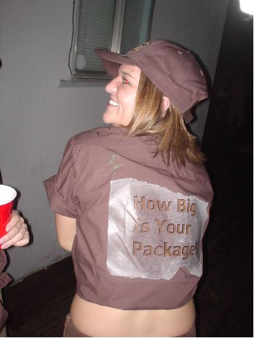 McNulty has gone way up in my book because of his costume and the greatest move that was pulled on this night. I think I would've gone with a huge black dildo, but you know, that's just me. He left his 26 year old girlfriend at our house and ran off, leaving her to sleep in one of the guys' beds at some fucking college house. I would be so pissed. His sign says, "Have you been a good little boy?"